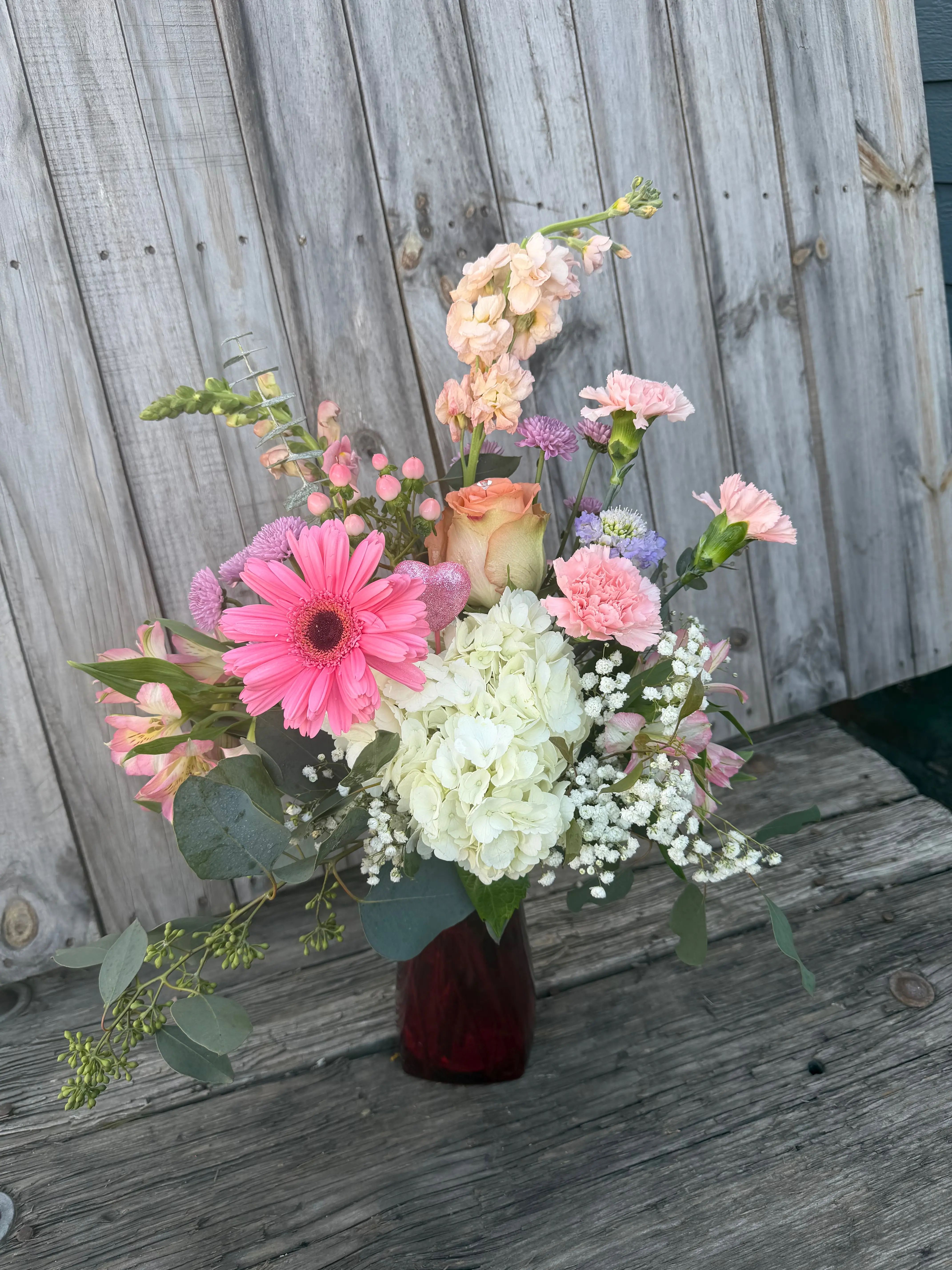 A large vase of pastel colored valentines flowers. Actual flowers and colors may vary based on availability.